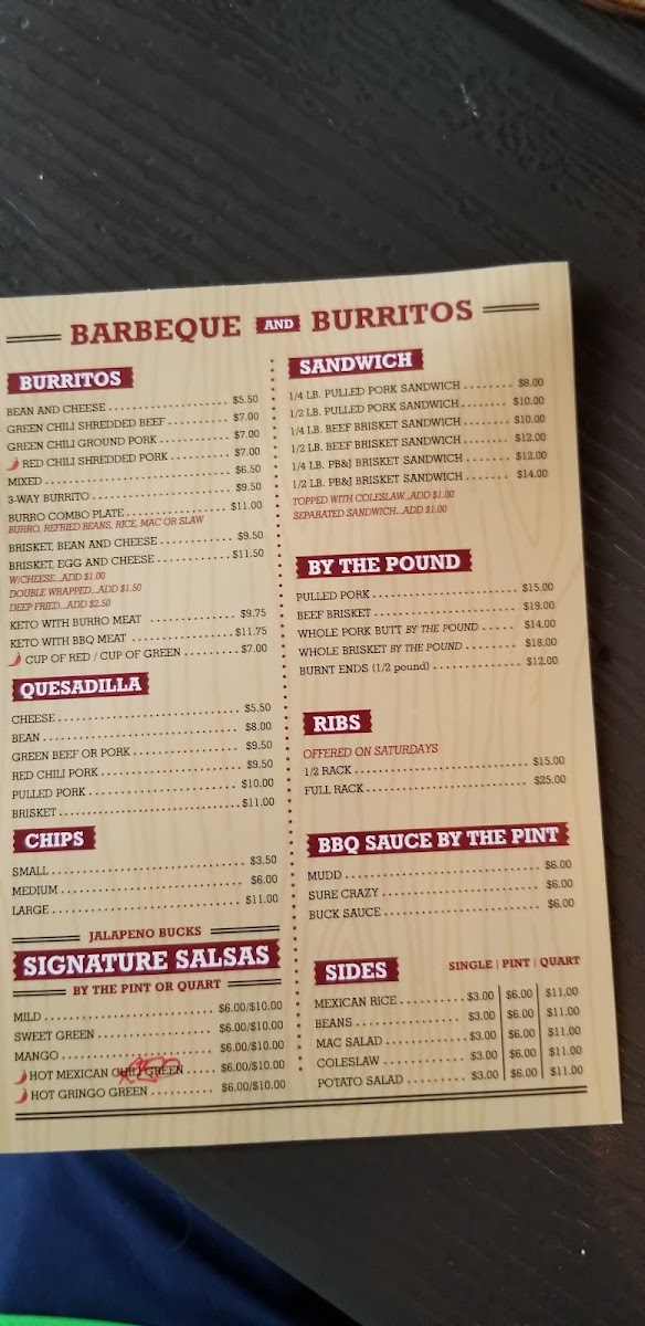 Nestled in Mesa, AZ, Jalapeño Buck's is a hidden gem redefining barbeque and burritos. At first glance, the menu offers a delectable range of options that cater to various tastes and dietary needs. From the hearty Keto Burrito with BBQ Meat at $16.00 to the classic Bean and Cheese Burrito at just $7.75, every bite promises satisfaction.